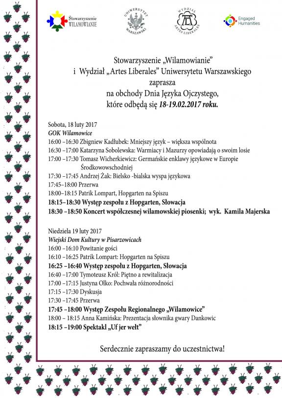 Dnia 18 lutego świętowano Dzień Języka Ojczystego w Wilamowicach. Organizatorami tego wydarzenia byli: Stowarzyszenie Wilamowianie, Wydział Artes Liberales Uniwersytetu Warszawskiego oraz Gmina Wilamowice.