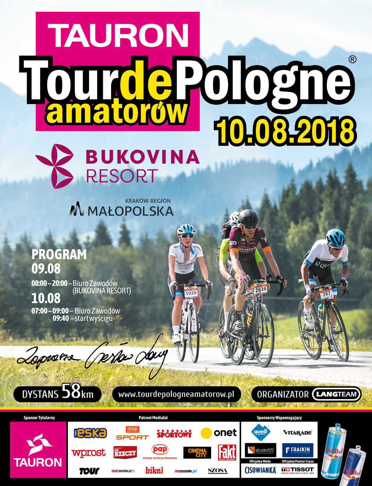 Tradycyjnie już oprócz głównego wyścigu odbędą się imprezy towarzyszące. 10 sierpnia w Bukowinie Tatrzańskiej zostanie rozegrany TAURON Tour de Pologne Amatorów. Ta wyjątkowa impreza organizowana jest od 2010 roku i już na stałe wpisała się w krajobraz sportowych wydarzeń. W tym roku trasa wyścigu dla amatorów liczy 58 kilometrów, a kolarze będą mieli do pokonania wspinaczki na Ścianę HARNAŚ (Rzepiska), Ścianę BUKOVINA (Gliczarów) oraz Rusiński Wierch. Na najlepszych czekają wspaniałe nagrody, a po finiszu każdy chętny będzie mógł obejrzeć decydujące rozstrzygnięcia wyścigu zawodowców. Zapisy na TAURON Tour de Pologne Amatorów trwają do 20 lipca, po tym terminie zgłoszenie uczestnictwa będzie możliwe w Biurze Zawodów w przeddzień i w dniu wyścigu.  Szczegóły na stronie: www.tourdepologneamatorow.pl
