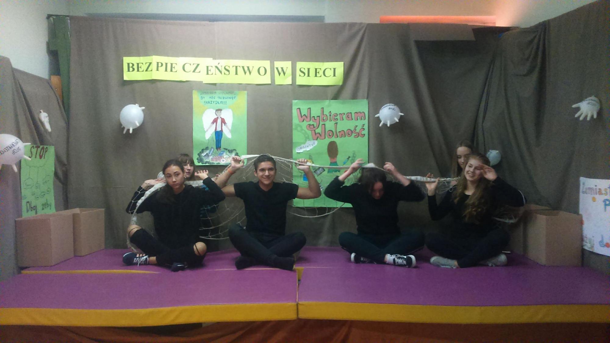 - spektakl teatralny „Wybieram wolność” dotyczący cyberprzemocy i uzależnień od internetu zaprezentowany przez uczniów gimnazjum.