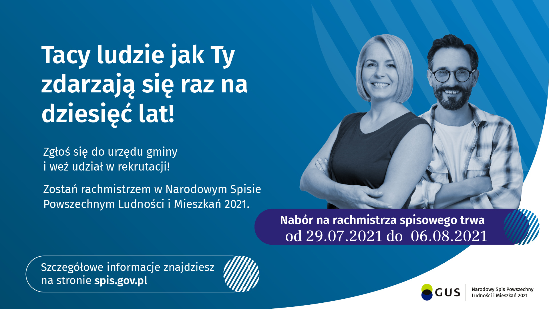 ogłasza otwarty i konkurencyjny nabór kandydatów na rachmistrzów spisowych wykonujących czynności w ramach prac spisowych związanych z przeprowadzeniem na terytorium Rzeczpospolitej Polskiej w 2021 r. spisu powszechnego NSP 2021