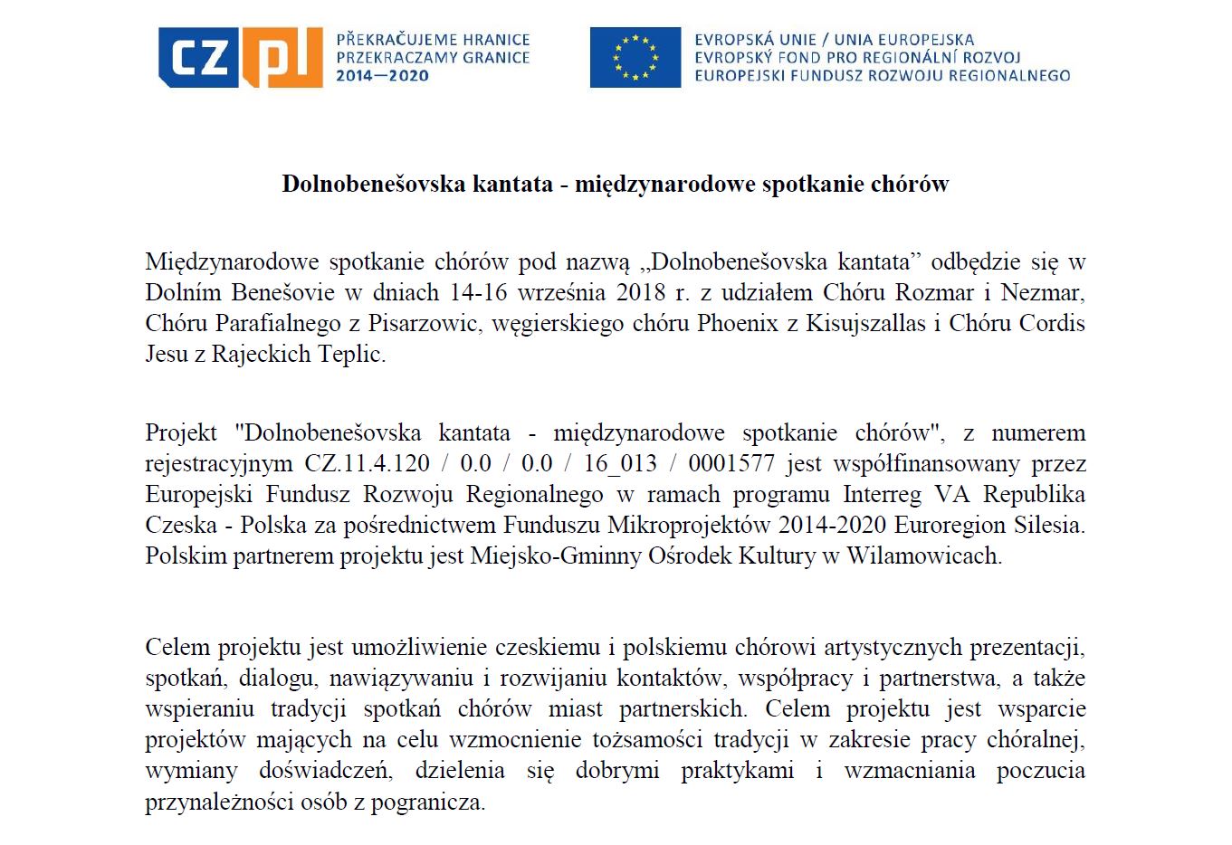 » Dolnobenešovska kantata - międzynarodowe spotkanie chórów