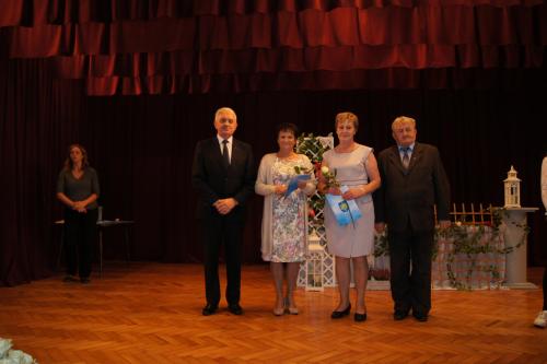 Po przedstawieniu zostały wręczone podziękowania dla nauczycieli i pracowników oświaty, którzy w roku szkolnym 2017/2018 przeszli na emeryturę, a byli to: Pani Stanisława Andruszko - sekretarka ze Szkoły Podstawowej w Dankowicach, Pani Krystyna Gacek pracownik z Przedszkola Publicznego w Pisarzowicach, Pan Krzysztof Gacek pracownik ze Szkoły Podstawowej w Pisarzowicach oraz Pani Danuta Wiercigroch nauczycielka z Zespołu Szkolno – Przedszkolnego w Starej Wsi.