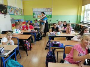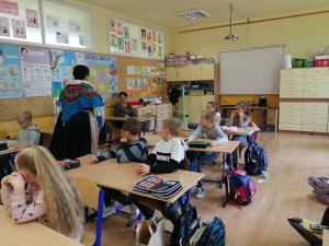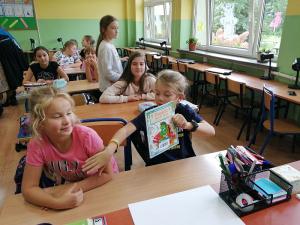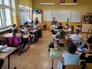 Dzieci z zaciekawieniem słuchały przedstawianych zdarzeń oraz przygód małego żółwika Franklina, a później porównywały historie głównego bohatera ze swoimi przygodami, niewiele różniącymi się od opisanych w książkach. Na pożegnanie panie częstowały małych słuchaczy słodkościami, a uczniowie klas drugich i trzecich otrzymali od wychowawczyń i pań bibliotekarek karty ucznia do szkolnej biblioteki. Jakież było nasze miłe zdziwienie, kiedy na przerwie do biblioteki przybiegały dzieci, z kartami i wypiekami na buzi, by wypożyczyć pierwszą w swoim życiu książkę oraz skosztować ciasteczko upieczone przez panią bibliotekarkę.