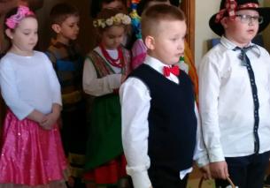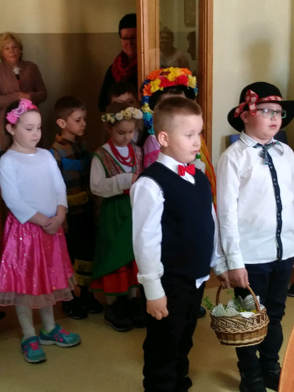 W dniach 15-16 kwietnia przedszkolaki z gr VI wraz z panią dyrektor Elżbietą Maciejczyk odwiedziły Urząd Gminy, Zakład Obsługi Szkół i Przedszkoli, księdza proboszcza Stanisława Morawę oraz podopiecznych Dziennego Domu Opieki „Senior+” w Wilamowicach aby z okazji zbliżających się świąt złożyć życzenia. Dzieci przedstawiły program artystyczny nawiązujący do oznak wiosny oraz okresu świątecznego. Wiersze oraz piosenki przeplatane były tańcem kwiatów do melodii walca z opery „Dziadek do orzechów”. Wszyscy młodzi artyści zostali nagrodzeni gromkimi brawami. Po skończonym występie przedszkolaki wręczyły upominki i zostały obdarowane słodyczami.