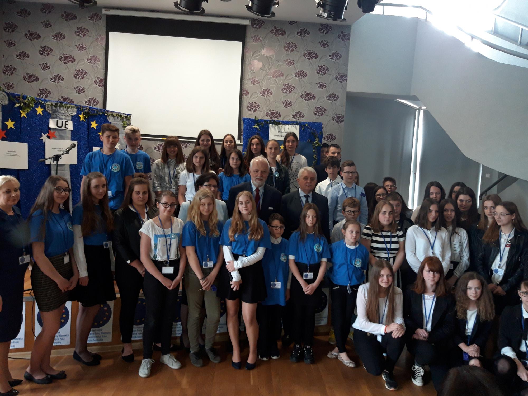 Przewodnim tematem sejmiku było zagadnienie „Młodzież polska na europejskim rynku pracy”. Gośćmi honorowymi sejmiku byli: pan Burmistrz Marian Trela, pan Europoseł Jan Olbrycht,  pani Dziekan Wydziału Finansów Technologii Informatycznej Wyższej Szkoły Finansów i Prawa w Bielsku-Białej Elżbieta Rak-Młynarska, Kierownik Zakładu Obsługi Szkół i Przedszkoli pani Bożena Sobocińska. Radnych gminy reprezentowali: pani Urszula Kucharska (przewodnicząca Komisji ds. Samorządu, Oświaty, Kultury, Zdrowia i Sportu), Michał Sztafiński (wice-przewodniczący Rady), pani Sołtys Hecznarowic Beata Nycz oraz dyrektorzy szkół Gminny Wilamowice - Lidia Dziubek, Mariola Mitoraj, Dorota Foltan, Genowefa Lisewska i Maciej Żarski. Na widowni zebrali się delegaci Sejmiku Uczniowskiego Gminy Wilamowice na czele z jego prezesem Dominkiem Wojtachem oraz uczniowie szkół Gminy Wilamowice, uczestnicy XV edycji Gminnego Konkursu „Europa-nasz wspólny dom” wraz ze swoimi nauczycielami. Zebranych przywitał dyrektor Zespołu Szkolno-Przedszkolnego pan Maciej Żarski, a następnie  zaprosił na krótką część artystyczną przygotowaną przez jego uczniów. Piotr O’Rourke i Łukasz Dawidziuk zaprezentowali „Listy z przeszłości czyli średniowieczne początki integracji europejskiej”, a następnie uczennica Zuzanna Nycz uroczyście odśpiewała hymn Unii Europejskiej „Odę do radości”. W drugiej części naszej uroczystości głos zabrali: pan Burmistrz Marian Trela, omawiając XV-lecie członkostwa Polski w Unii Europejskiej z perspektywy Gminy Wilamowice, pani Dziekan Wydziału Finansów i Technologii Informatycznej Wyższej Szkoły Finansów i Prawa w Bielsku-Białej Elżbieta Rak-Młynarska, prezentując wykład „Młodzież polska na europejskim rynku pracy” oraz pan europoseł Jan Olbrycht, opisując zebranej młodzieży i gościom prace europarlamentu. Jego wykład zakończył drugą cześć naszej uroczystości. W trzeciej części pan Burmistrz Marian Trela wraz z panem Europosłem Janem Olbrychtem wręczyli pamiątkowe narody i puchary podsumowujące XV gminny konkurs „Europa-nasz wspólny dom”. Puchar za zwycięstwo w konkursie otrzymała Szkoła Podstawowa w Hecznarowicach, drugie miejsce - Szkoła Podstawowa w Wilamowicach, trzecie-Szkoła Podstawowa w Pisarzowicach.
