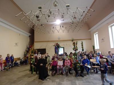 Wspaniała, słoneczna pogoda przyczyniła się także do przyjścia bardzo dużej ilości mieszkańców z dziećmi oraz młodzieży z palmami do kościoła p.w. św. Marcina w Pisarzowicach. Ksiądz proboszcz Janusz Gacek w asyście wikariusza ks. Adama poświęcili wspaniałe palmy i uczestnicy weszli na Mszę Świętą, po której księża wikariusze rozdawali uczestnikom piękne zakładki do książki o treści religijnej. Następnie zrobiono wspólne zdjęcie i uczestnicy zgłaszający swoje ręcznie wykonane palmy skierowali się do Wiejskiego Domu Kultury, by zadeklarować swoje uczestnictwo w konkursie.