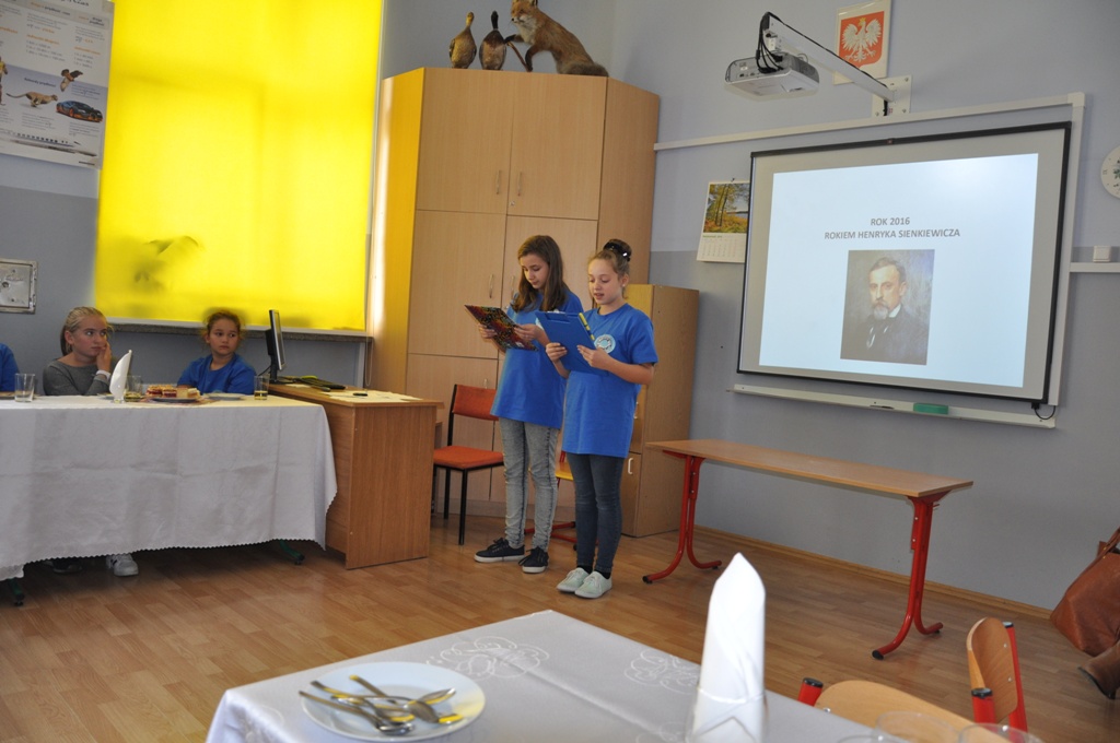 Przybyli delegaci mogli dowiedzieć się wielu ciekawostek związanych z życiem Henryka Sienkiewicza, między innymi, że zmagał się on z kompleksami z powodu swojego niskiego wzrostu oraz że był aż trzy razy żonaty, a każda z jego żon miała na imię Maria. Uczniowie ze szkół naszej gminy wzięli udział w quizach i konkursach, popróbowali swoich sił w układaniu fabuły w różnych stylach i miło spędzili czas w gronie nowych kolegów i koleżanek. Po zakończeniu merytorycznej części sesji delegaci zwiedzili szkołę, wymienili swoje doświadczenia, a także zaplanowali wyjazdowe warsztaty, które odbędą się w listopadzie. Tematem będą zasady funkcjonowania jednostek samorządu terytorialnego w Polsce oraz władza państwowa.