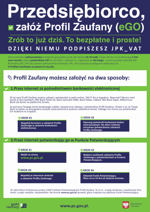 JPK_VAT przesyła się wyłącznie elektronicznie. Do wypełnienia tego obowiązku potrzebne jest m.in. założenie Profilu Zaufanego.