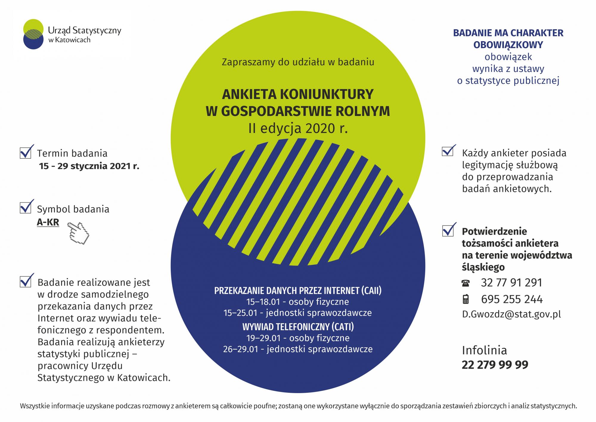 W ramach stałego informowania o realizacji na terenie województwa śląskiego badań ankietowych, prowadzonych przez ankieterów – pracowników Urzędu Statystycznego w Katowicach przekazujemy