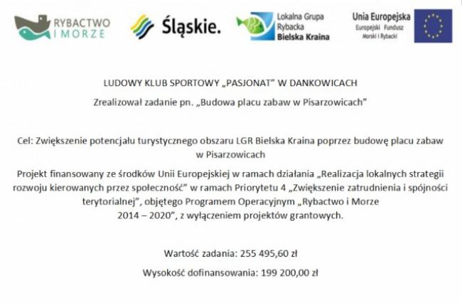 » LUDOWY KLUB SPORTOWY „PASJONAT” W DANKOWICACH zrealizował zadanie pn. „Budowa placu zabaw w Pisarzowicach”