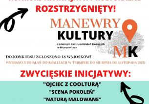 25 czerwca 2021 głosem jury oraz osób składających inicjatywę został rozstrzygnięty konkurs na inicjatywy kulturalne w ramach projektu "Manewry Kultury" w Gminnym Centrum Działań Twórczych w Pisarzowicach (Beneficjentem programu jest Miejsko - Gminny Ośrodek Kultury w Wilamowicach).