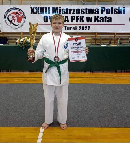 Uczeń Szkoły Podstawowej w Wilamowicach, Krzysztof Taratuta, podczas XXVII Mistrzostwa Polski OPFK w Kata, rozgrywanych w Turku 28 maja 2022 r., wywalczył brązowy medal! Krzysiek jest uczniem klasy 7a, a jego wychowawczynią jest pani Anna Strzelczyk.