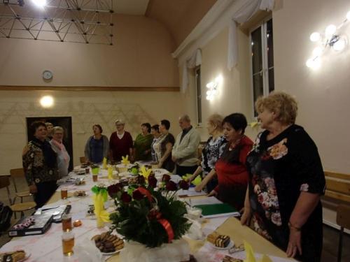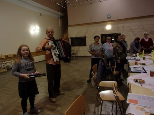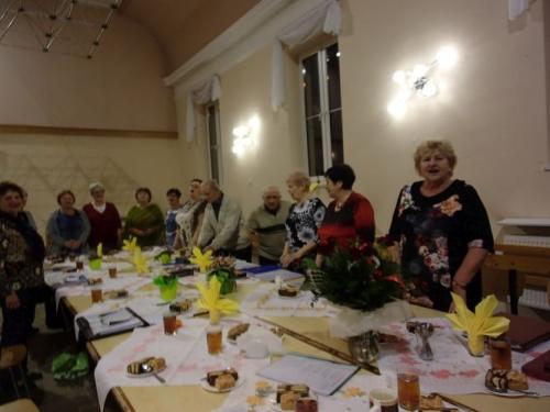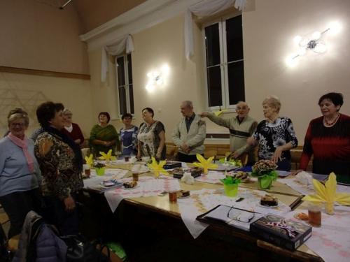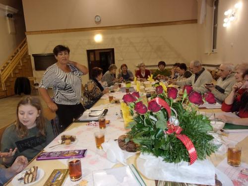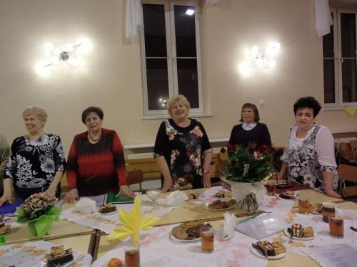 Pani Basia upiekła ciasto „Usta Adama”, a pani Czesia „Jabłkowy Rarytas”. Ciasta jak na tę uroczystość były nie tylko pyszne, ale i trafne z nazwy. Panowie wręczyli każdej Pani „dużej czy małej” po dużej - kalorycznej czekoladzie, natomiast najmłodsze członkinie zespołu Kaja, Wiktoria i Zuzia wręczyły panom słodkie belgijskie łakocie. Po tych pysznościach można było pomyśleć o „odkładaniu sadełka”. Ale nic z tych rzeczy. Zadbała o to w 100% nasza choreograf Bogusia, szlifując i nie dając wytchnienia członkiniom podczas próby nad nowym programem. Program ten będzie zaprezentowany na „Wiosennym spotkaniu kobiet 2018-Rok Praw Kobiet w Polsce”. Spotkanie to organizuje Zarząd Koła Gospodyń Wiejskich dla wszystkich swoich członkiń jak i zaproszonych gości w kawiarni Fest Park 10 kwietnia br.