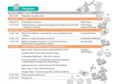W programie: Panele z udziałem ekspertów i praktyków nt. potencjału regionu, możliwości i wyzwań Strategii, projektu - od pomysłu do biznesu oraz możliwości uzyskania dotacji. Ponadto panel dyskusyjny, poczęstunek i konkurs z nagrodami.