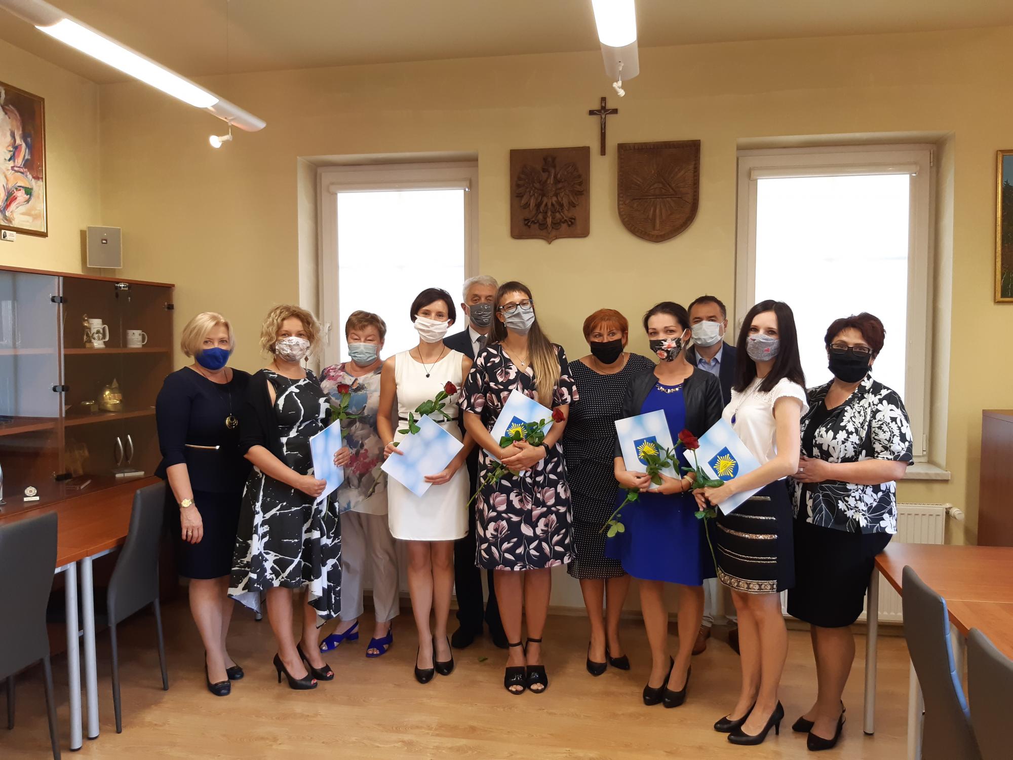 W dniu 2 lipca 2020 r. pięć nauczycielek mgr Anna Matyjaszek z Przedszkola Publicznego w Pisarzowicach, mgr Katarzyna Dyduch ze Szkoły Podstawowej w Pisarzowicach, mgr Anna Marek ze Szkoły Podstawowej w Pisarzowicach, mgr Jolanta Markiel – Gumińska z Zespołu Szkolno – Przedszkolnego w Hecznarowicach oraz mgr Wioletta Wróbel z Zespołu Szkolno – Przedszkolnego w Starej Wsi zdały egzamin przed komisjami powołanymi zarządzeniami Burmistrza Wilamowic. W dniu 20 sierpnia 2020r. Nauczycielki złożyły ślubowanie na godło Polski. Ślubowanie odebrał Burmistrz Wilamowic. W uroczystości uczestniczyli również dyrektorzy. Po złożeniu ślubowania Burmistrz Pan Marian Trela nadał stopień nauczyciela mianowanego i wręczył nauczycielkom akty nadania stopnia nauczyciela mianowanego oraz listy gratulacyjne i kwiaty. Składając gratulacje podziękował