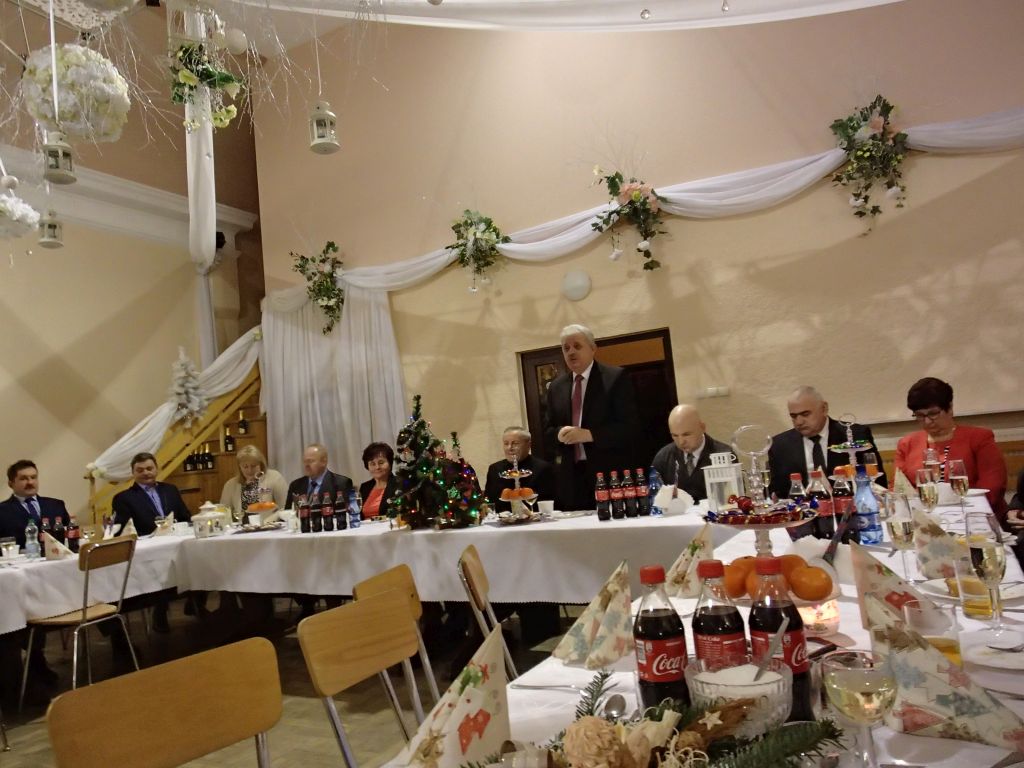 Głos także zabrał Burmistrz pan Marian Trela, serdecznie dziękując za współpracę w minionym roku, życząc wszystkim zdrowia, szczęścia oraz wytrwałości i konsekwencji w tym co robimy. Głos zabrał także zaprzyjaźniony z Pisarzowicami i Gminą Wilamowice pan Adam Fabia. Pan Adam podkreślił jak ważne jest nasze miejsce i jaką mieszkańcy Pisarzowic posiadają wielką wrażliwość i serce dla drugiego człowieka. Podziękował wszystkim za to co robi się u nas dla polepszenia komfortu osób niepełnosprawnych (m.in. klasy integracyjne), za dobro jakie jest w nas.