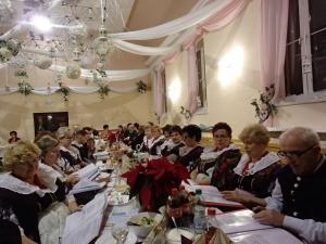 Sala w Wiejskim Domu Kultury odświętnie udekorowana przez panią Urszulę Kucharską, stwarzała nastrój i magię nadal trwających Świąt Bożonarodzeniowych, a śpiew kolęd wraz z zespołem wszystkich szacownych gości potęgował i emanował atmosferą ciepła, dobra i wzajemnej życzliwości.