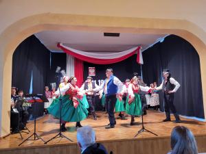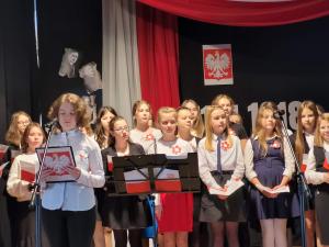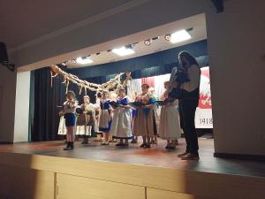 Następnie uczniowie Szkoły Podstawowej im. Jana Pawła II z naszej miejscowości w przepięknej patriotycznej scenerii przygotowali wraz z nauczycielami widowisko słowno-muzyczne dotyczące Niepodległej pt. "Niepodległość znaczy wolność, słowa najpiękniejsze". Na zakończenie Z.R.”Pisarzowianki” zaśpiewał pieśni patriotyczne.