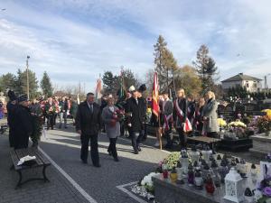 Po Mszy Świętej przy akompaniamencie Reprezentacyjnej Orkiestry Dętej z Wilamowic pod batutą Mariusza Płonki, nastąpił przemarsz na cmentarz, gdzie poszczególne delegacje złożyły wiązanki kwiatów pod krzyżem.