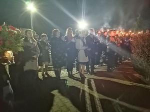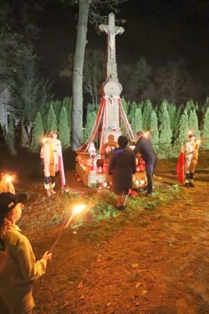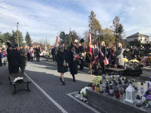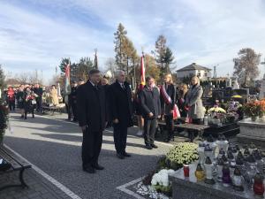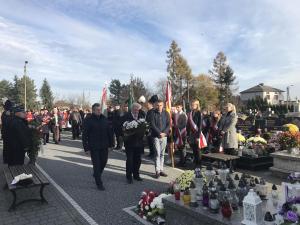 Następnie zostały złożone kwiaty i znicze pod tablicą płk. Mariana Pilarskiego i wszyscy udali się na cmentarz pod pomnik upamiętniający poległych w I i II wojnie światowej. Na cmentarzu po uroczystym podniesieniu flagi na maszt, odśpiewaniu „Mazurka Dąbrowskiego” przy akompaniamencie młodzieżowej orkiestry OSP i krótkim wprowadzeniu przez panią Dyrektor Szkoły Podstawowej Lidię Dziubek przeprowadzony został przez nauczyciela historii pana Roberta Warota - Apel Poległych. Po jego zakończeniu zostały złożone kwiaty i zapalone znicze przez władze Gminy, gości z Republiki Czeskiej i organizacje naszej miejscowości. Wartę przy pomniku pełnili druhowie OSP i młodzież szkolna z zapalonymi pochodniami.