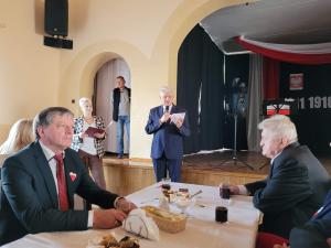Na sali widowiskowej wszystkich obecnych przywitał burmistrz Gminy Wilamowice Marian Trela. Głos zabrali również pan Bronisław Gawron i gość z Lesznej Dolnej pan Tadeusz Szkucik. Należy podkreślić, że nasi goście z Czech od wielu już lat opiekują się grobem naszego młodego legionisty Józefa Gacka, który tam zginął. Opiekują się grobem człowieka, którego zupełnie nie znali, a na pytanie dlaczego to robią odpowiedź była krótka; tak trzeba, bo on był Polakiem, a my też jesteśmy Polakami mieszkającymi na Zaolziu w Czechach.