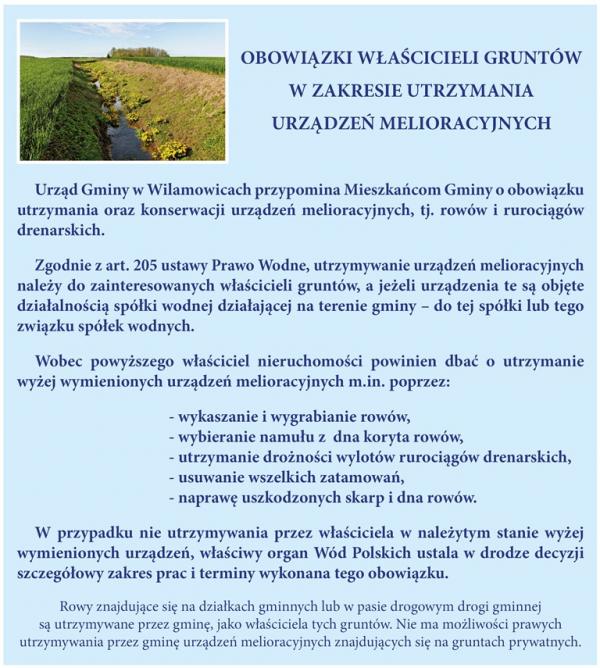 » OBOWIĄZKI WŁAŚCICIELI GRUNTÓW W ZAKRESIE UTRZYMANIA URZĄDZEŃ MELIORACYJNYCH