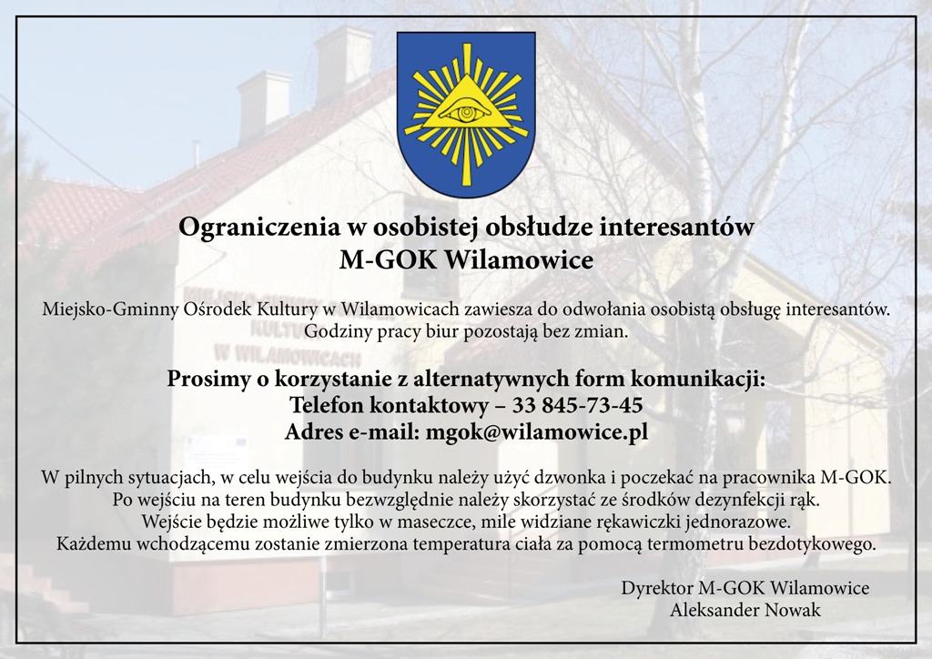 Ograniczenia w osobistej obsłudze interesantów M-GOK Wilamowice