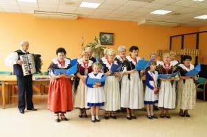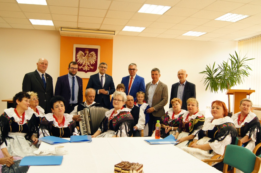 Następnie Zespół „Pisarzowianki” udał się do Starostwa Powiatowego, by tam przy kawie i herbacie wraz z wicestarostą Grzegorzem Szetyńskim, przedstawicielkami administracji i panem Jarosławem Jesionką pośpiewać dożynkowo „tak jak tradycja każe”. Serdecznie dziękujemy za zaproszenie i umożliwienie zaprezentowania naszej pisarzowskiej tradycji i kultury.