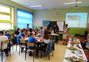 Mieliśmy przyjemność powitać delegatów i opiekunów z sąsiednich szkól. Dzieci miały okazję zapoznać się ze sposobami zachowań w różnych miejscach i sytuacjach. Po części teoretycznej i wysłuchaniu krótkiej historii Savoir-vivr’u, uczniowie wykonali między innymi prawidłowe nakrycie do stołu. Brali też udział w wylosowanych przez siebie scenkach aktorskich. Były one przeciwieństwem dobrych manier, dzięki czemu skłaniały wszystkich do cennych komentarzy i uwag, - co należałoby zmienić w danej sytuacji, aby być kulturalnym człowiekiem.