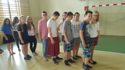 Delegaci ze wszystkich szkół w naszej gminie wzięli udział w zabawnych konkursach sportowych, a następnie nauczyli się dwóch niezwykle skocznych szkockich tańców. W dalszej części programu uczniowie mogli nieco ochłonąć po wysiłku fizycznym i posilić się pyszną kiełbasą z grilla oraz ciastkami.