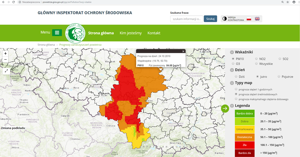 POWIADOMIENIE  o ryzyku wystąpienia przekroczenia poziomu informowania (101 – 150 µg/m3) dla pyłu zawieszonego PM10 w powietrzu