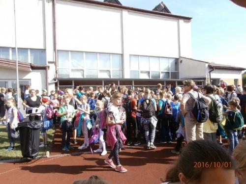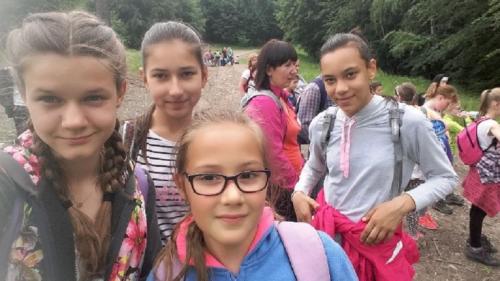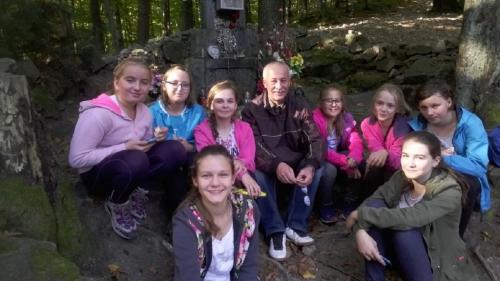 Na mecie zostaliśmy bardzo ciepło przywitani przez organizatorów czyli Starostwo Powiatowe i PTTK Podbeskidzie. Po posiłku uczestnicy brali udział w Powiatowym Konkursie wiedzy o powiecie bielskim. Paulina Tlałka znalazła się w ścisłym finale tego konkursu. Organizatorzy zaprosili nas do udziału w Jubileuszowym Jesiennym Rajdzie Kozy' 2016. Jeszcze raz okazało się, że w takich imprezach biorą udział setki uczniów naszego powiatu, że góry łączą ludzi. Jesienny Rajd odbył się w dniu 1 października. Początek to Lipnik Granica, a dalej czarnym szlakiem przeszliśmy na Przełęcz u Panienki, która znajduje się w bliskości Chrobaczej Łąki. Nazwa pochodzi od kapliczki z przedstawieniem Najświętszej Maryi Panny. Kapliczka została ufundowana przez Juliusza Beinlichta w 1884 roku, jak głosi tradycja z wdzięczności za cudowne ocalenie życia przed wilkami. Ma ona formę kamiennego obelisku z obrobionych bloków piaskowca. Na północnych stokach przełęczy znajduje się Źródło Maryjne, a w 30 minut szlakiem czerwonym można dojść do szczytu Chrobacza Łąka. Nazwa pochodzi od polany, a ta z kolei od popularnego w okolicy nazwiska Chrobaka. Ze szczytu widać panoramę Beskidu Małego z Górą Żar, Beskidu Śląskiego, a przy dobrej widoczności zobaczymy Babią Górę i Tatry Zachodnie.