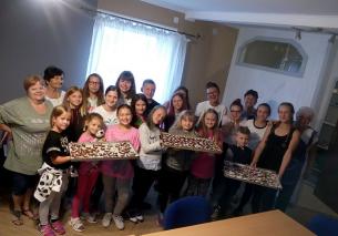 Na zakończenie słodkich warsztatów członkowie Teatrzyku zaśpiewali piosenki w ten sposób dziękując przedstawicielkom Koła Gospodyń Wiejskich „Strażniczki Tradycji” za wspólnie spędzone popołudnie. Następnie odbyło się ognisko z pieczeniem kiełbasy i degustacja upieczonych pierniczków.