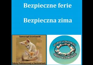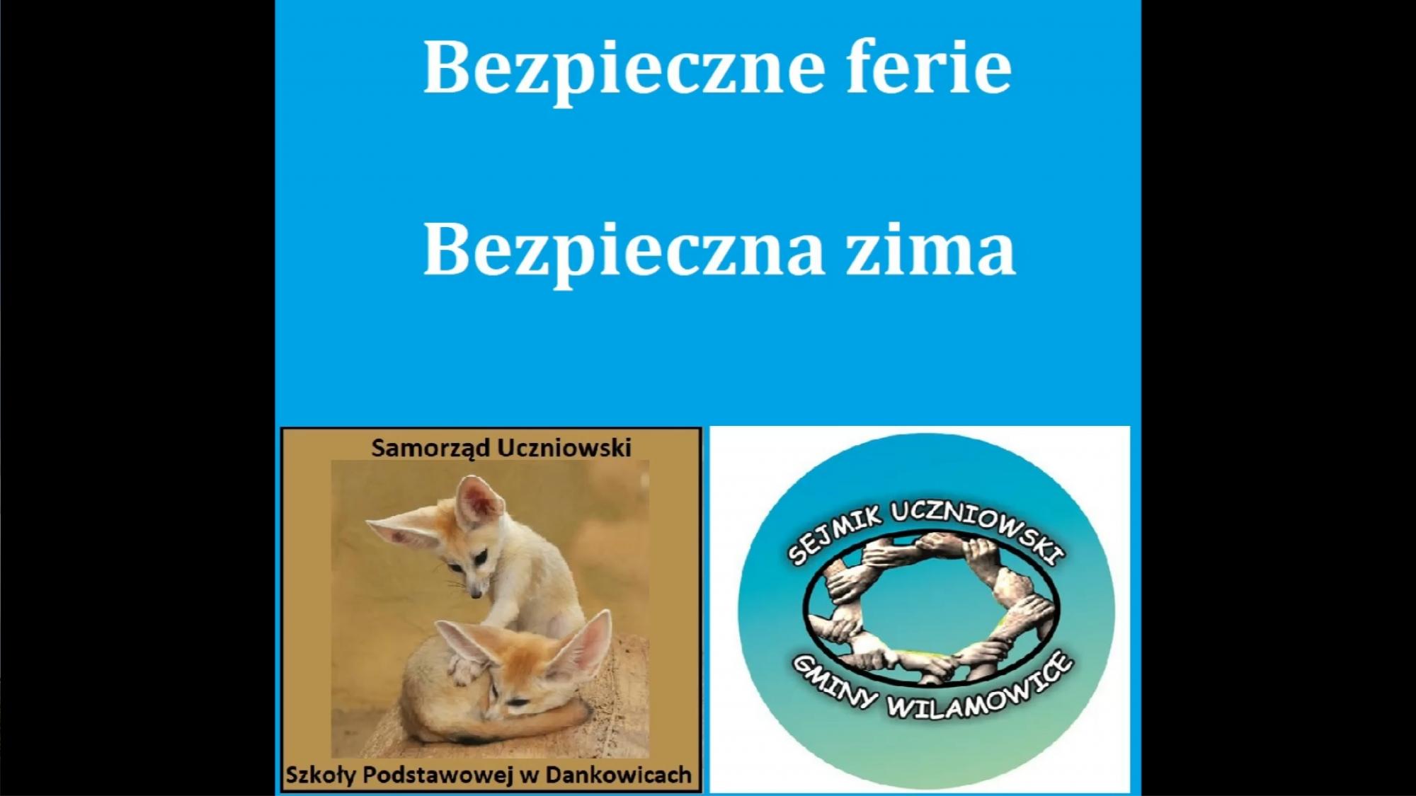 Sejmik Uczniowski Gminy Wilamowice i Samorząd Uczniowski Szkoły Podstawowej w Dankowicach przedstawia film "Bezpieczne ferie. Bezpieczna zima"