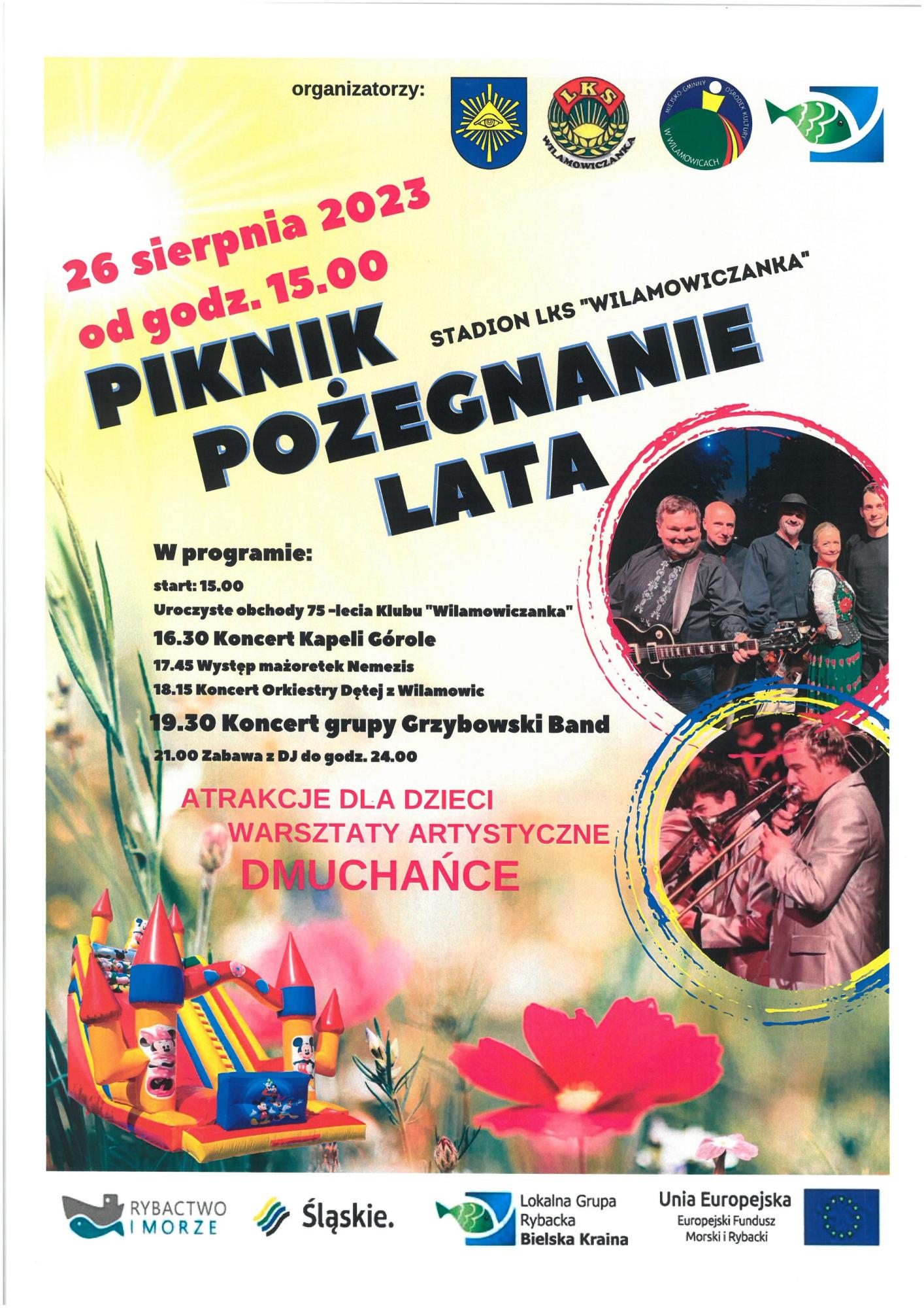 Serdecznie zapraszamy na PIKNIK POŻEGNANIE LATA, który odbędzie się 26 sierpnia 2023r. na stadionie LKS "WILAMOWICZANKA"