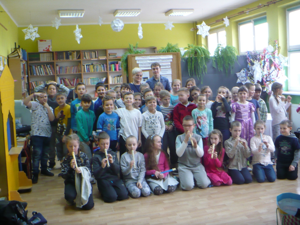 Na zakończenie spotkania z muzyką dzieci przeprowadziły wywiad z gościem, zaś P. Renata Stawowczyk zaprosiła chętnych „przyszłych muzyków” do udziału w prowadzonych przez nią zajęciach nauki gry na flecie prostym.