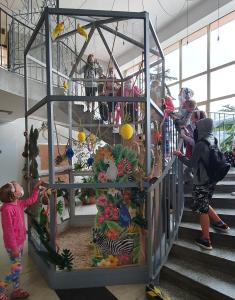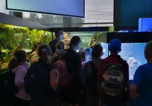 Swoje zwiedzenie rozpoczęli w sali ekspozycyjnej, gdzie weszli do łodzi i z niej wysłuchali prelekcji o morskich zwierzętach. Pan Bartosz Czader niebywale interesująco opowiadał o wszystkich eksponatach znajdujących się w Muzeum, a także o żywych okazach, które dzieci mogły podziwiać, a niektóre z nich nawet dotknąć! Największym zainteresowaniem cieszyły się żywe motyle w nowo wybudowanej Motylarni. Wizyta w Muzeum okazała się doskonałą lekcją biologii i ekologii, każdy mógł dowiedzieć się czegoś nowego. Ta wizyta na długo pozostanie w pamięci dzieci.