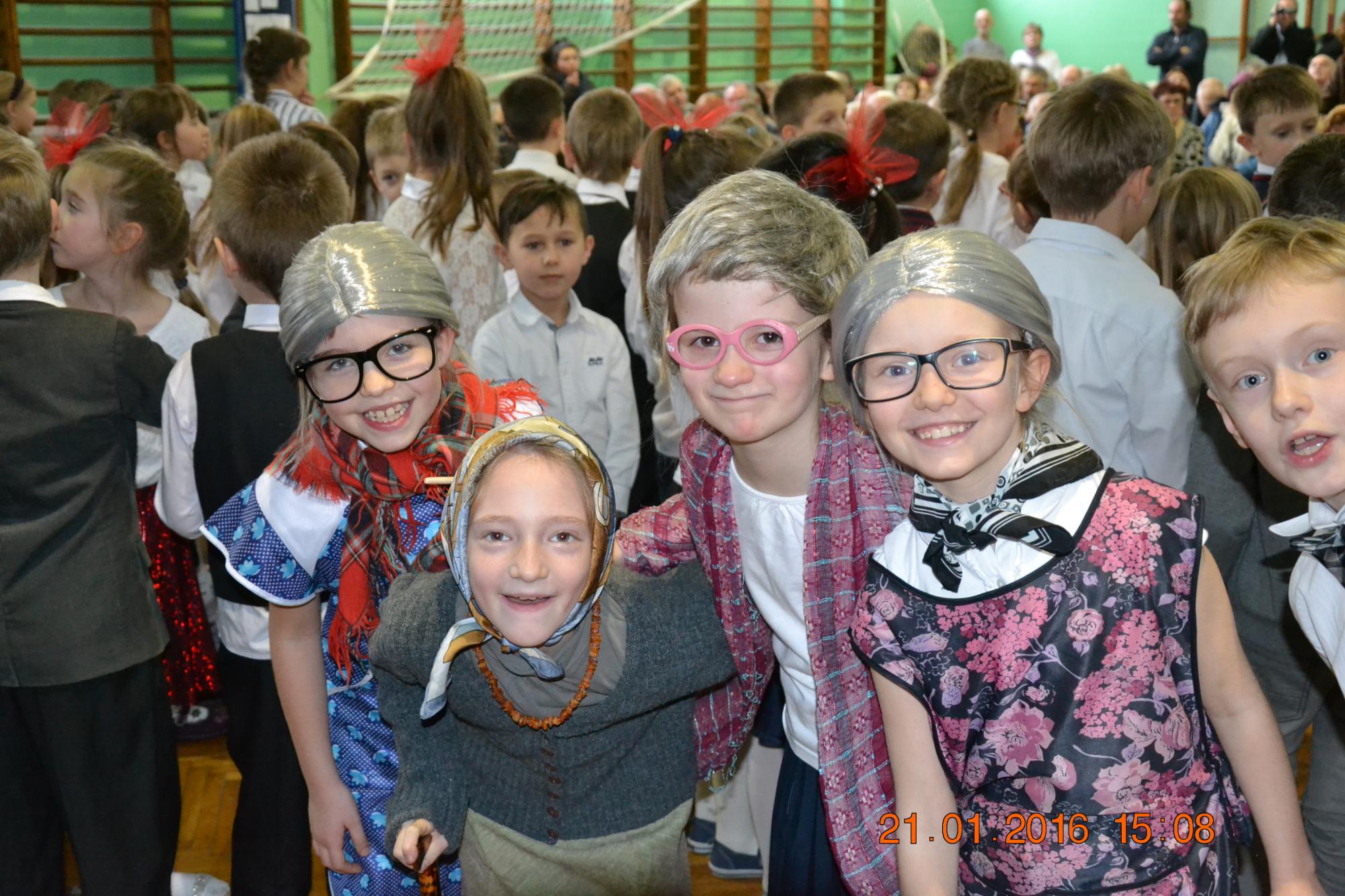 W tym roku uroczystość ta odbyła się 21 stycznia. Zaproszeni dziadkowie i babcie przybyli licznie, aby podziwiać występy swoich wnucząt. Uroczystość rozpoczęła pani Wicedyrektor Barbara Więzik, która serdecznie przywitała przybyłych gości i złożyła życzenia wszystkim babciom i dziadkom. Potem dzieci klas drugich pod kierunkiem swoich nauczycielek: G. Boguniowskiej, M. Dynarowskiej, J. Gacek i J. Zużałek przedstawiły piękny program artystyczny. Były to wiersze i piosenki związane z tym świętem. Goście obejrzeli też tańce w wykonaniu dzieci. Występy bardzo się podobały, o czym świadczyły gromkie brawa. Atmosfera tej uroczystości była wspaniała, a podziękowaniom nie było końca. Nie zabrakło życzeń, laurek i własnoręcznie wykonanych prezentów, które zostały wręczone babciom i dziadkom na zakończenie uroczystości.