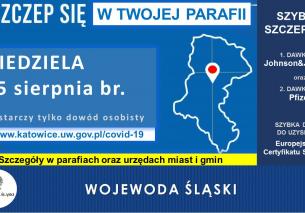 Gminny Ośrodek Pomocy Społecznej w Wilamowicach informuje, że w najbliższą niedzielę tj. 15.08.2021 r.,z inicjatywy Wojewody Śląskiego odbędzie się akcja „SzczepimySię w  parafiach”.
