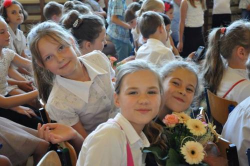 To był piękny rok szkolny, rok w którym pierwszaczki musiały zmierzyć się z trudami szkolnymi-świetnie im się to udało, szóstoklasiści musieli sprostać ogromowi wymagań stawianymi przed nimi-też wypadli wspaniale. Drugoklasiści, trzecia klasa, czwarta i piąta, dorównywali kroku kolegom i koleżankom, osiągając sukcesy w wielu dziedzinach. To był rok wspaniałych uroczystości, wspaniałych wspólnie spędzonych chwil, wycieczek, cudownej Zielonej Szkoły, podniosłych chwil, zwycięstw, sukcesów. Zakręciło się też wiele łez w oczach ponieważ żegnaliśmy wspaniałe panie: panią Joasię i panią Jadzię odchodzące z Naszej szkoły. Rozstawaliśmy się z kochanymi Wychowawczyniami i z szóstą klasą, która co prawda daleko nie odchodzi, ale zamyka za sobą kolejny etap w życiu. W efekcie był więc ocean łez, nostalgia, tęsknota, radość i duma. Taka mieszanka...:-)