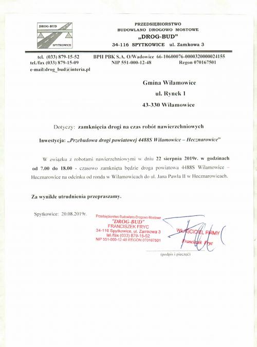 Uwaga - Zamknięcie drogi - Hecznarowice