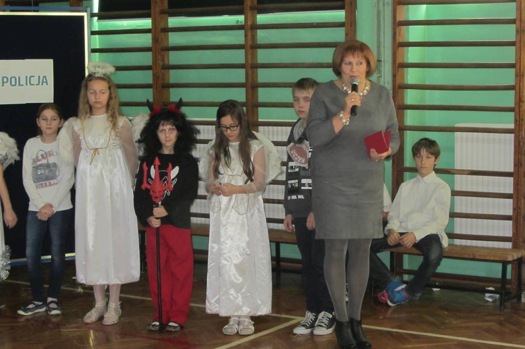 Takie oto życzenia złożyły dzieci z klasy IVA w finale przygotowanego przez siebie przedstawienia. Tym razem do szopki zaproszono postacie współczesne: wójta, lekarza, murarza, policjanta, uczniów, nauczyciela, dzieci z przedszkola, a także… Lucyfera i pomniejszych diabłów. Oprawę muzyczną zapewnił chór szkolny oraz trio Sonia i Karina Norymberczyk, i Mateusz Kostka (w nastrojowych utworach Złota Jerozolima i Przekażcie sobie znak pokoju), jak również Mariola Czulak (piosenka Gwiazda dnia). Podczas dwukrotnego występu (dla klas I - III i IV - VI) nie zabrakło wspólnego kolędowania oraz życzeń od Pani Dyrektor Lidii Dziubek i Samorządu Uczniowskiego. Tradycyjnie odbyły się także wigilie w klasach.