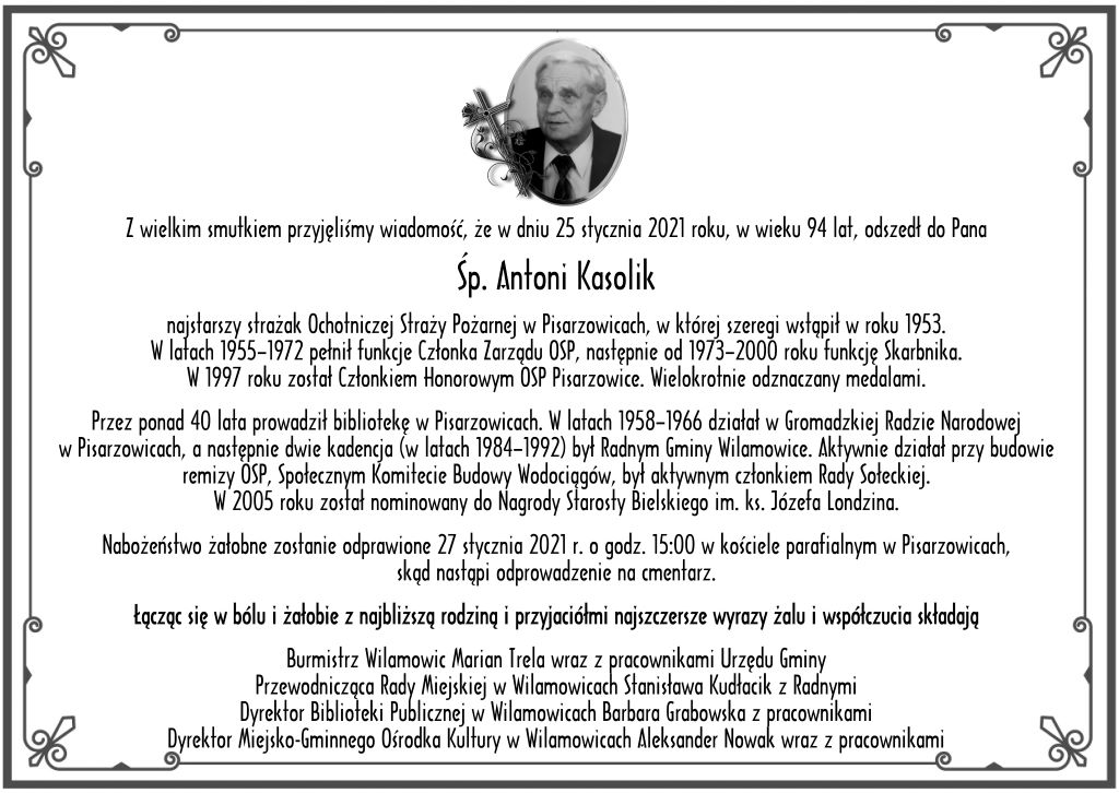 W wieku 94 lat odszedł do Pana Śp. Antoni Kasolik