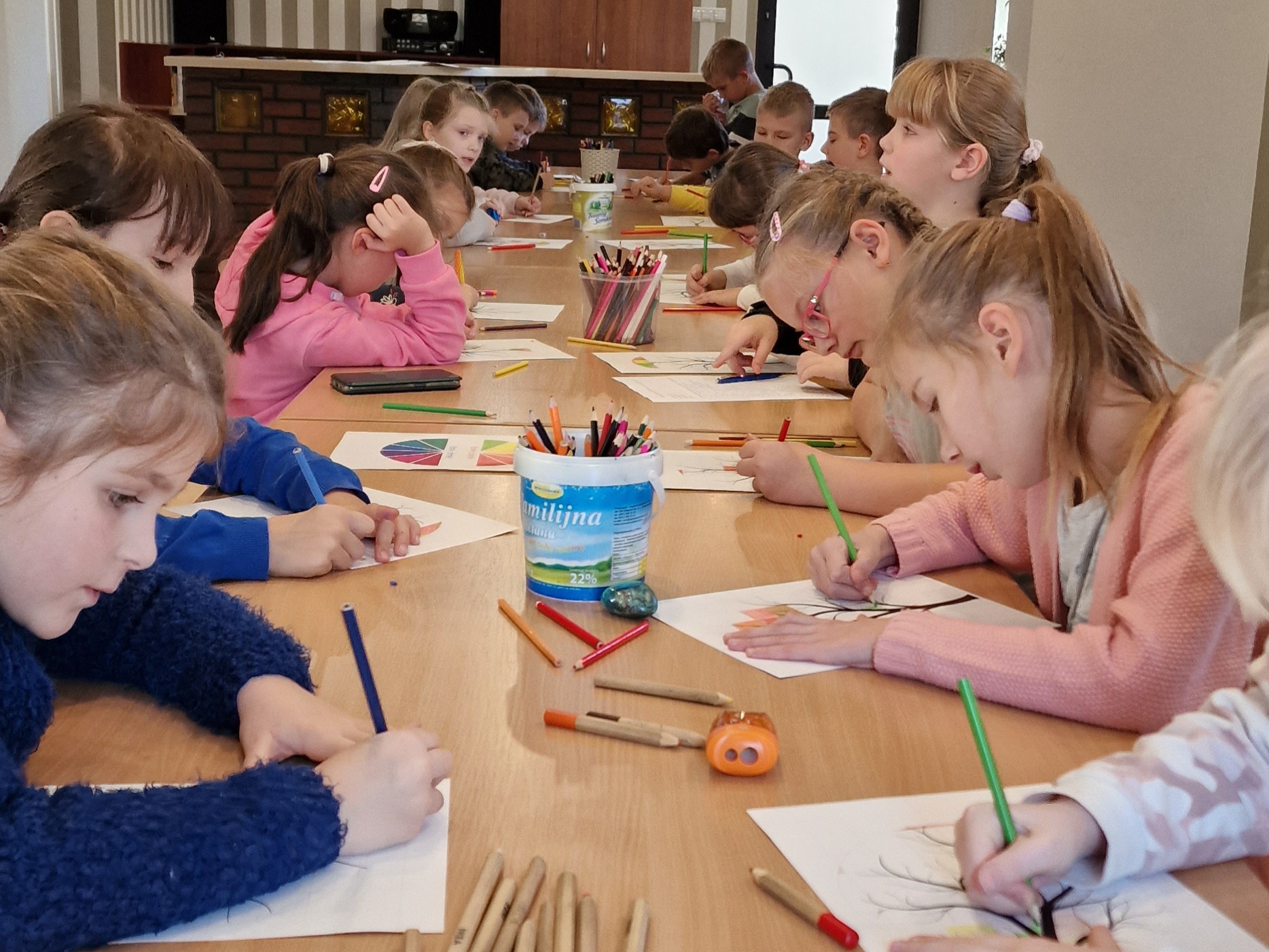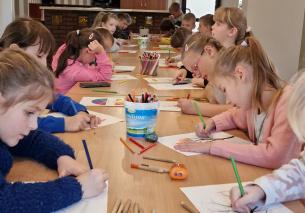 8 listopada w Miejsko-Gminnym Ośrodku Kultury gościliśmy dzieci z Zespołu Szkół w Wilamowicach. Odwiedziła nas klasa IIa w 17-osobowym składzie, pełna zapału do pracy i głodna artystycznych wyzwań. Młodzi artyści wykazali się niezwykłą precyzją, uważnością i chęcią do działania.