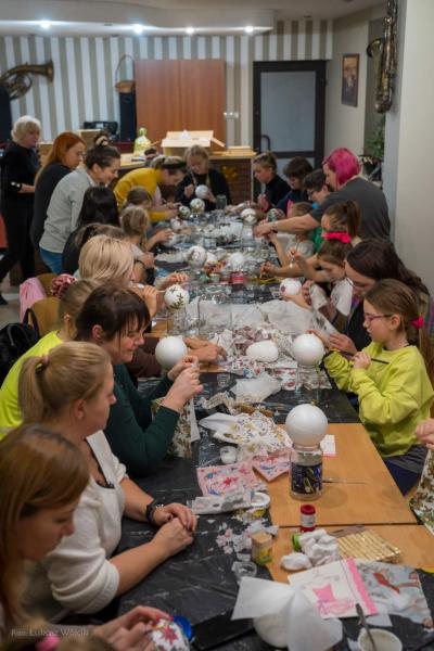 W piątkowy wieczór, 18 listopada w sali M-GOK w Wilamowicach odbyły się rodzinne warsztaty zdobienia bombek świątecznych techniką decoupage. W akcję zaangażowały się mażoretki "Gracja" ze swoimi opiekunami, którzy wykazali się niezwykłą kreatywnością i precyzją w tworzeniu ozdób. Powstało mnóstwo pięknych bombek, które już niebawem będzie można zakupić podczas Jarmarku Świątecznego w Wilamowicach.