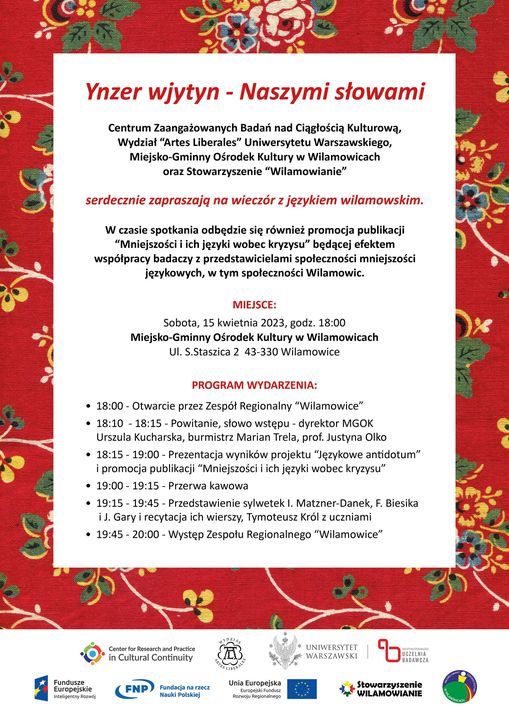 Wydziałem "Artes Librales" Uniwersytetu Warszawskiego Miejsko-Gminnego Ośrodka Kultury w Wilamowicach oraz naszego Stowarzyszenia