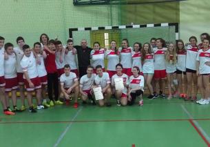 Rozgrywki dziewcząt rozpoczęły się od naszej wygranej z Gimnazjum w Dankowicach (7:2). Drugi mecz dziewcząt- z Pisarzowicami- był bardzo wyrównany, dobrze grała nasza bramkarka, cała drużyna skutecznie broniła i wynik końcowy był sprawą otwartą. W końcówce meczu Ola Fajfrzyk rzuciła czwartą bramkę, bramkę na wagę remisu. Kolejne rzuty nie były jednak celne i mecz skończył się wynikiem 4:4. Ostatnim mecz, zakończonym wygraną 11:3 drużyny Gimnazjum w Pisarzowicach, przesądził o mistrzowskim tytule. O końcowej klasyfikacji zdecydowała większa liczba zdobytych bramek i dziewczęta zajęły drugie miejsce. Szkoda, aczkolwiek wystarczyło rzucić tą jedną zwycięską bramkę i cieszyć się z mistrzostwa gminy! Ponoć jednak szczęście sprzyja lepszym.