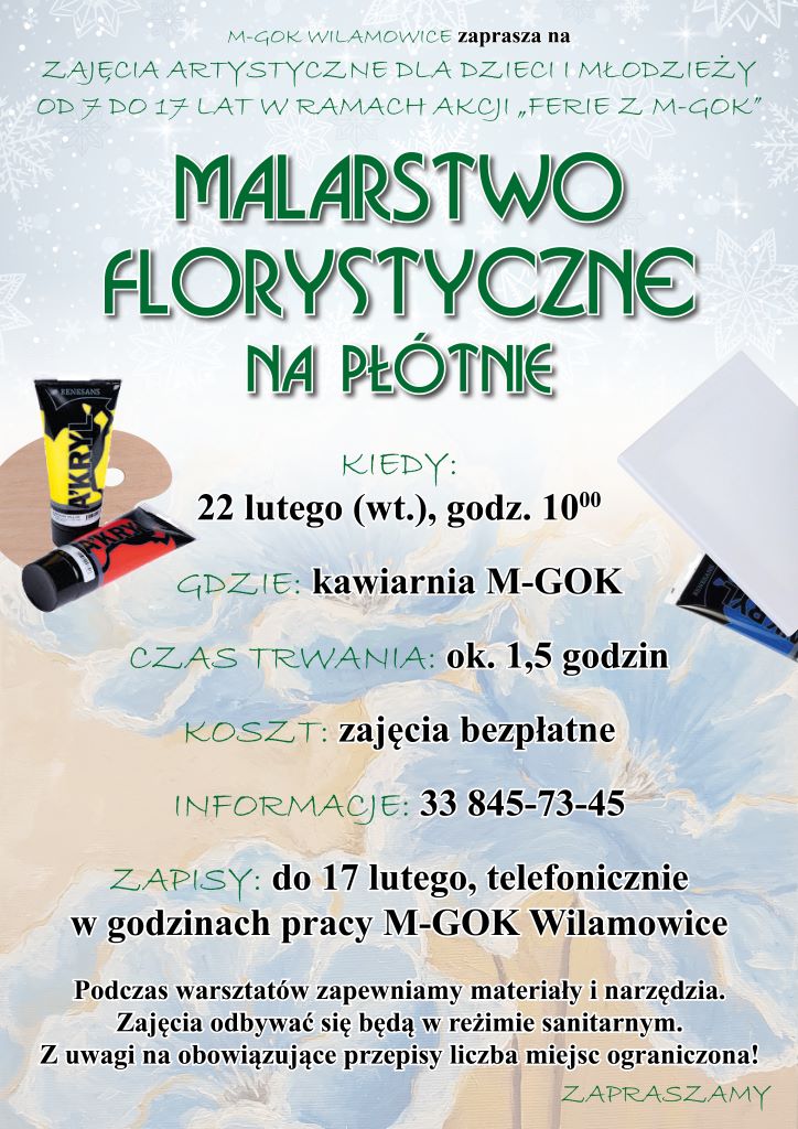 Zajęcia artystyczne dla dzieci i młodzieży od 7 do 17 lat "Malarstwo florystyczne" w ramach akcji "Ferie z M-GOK"