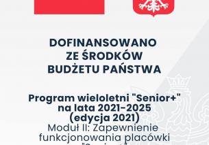 Dzienny Dom "Senior +" w Wilamowicach otrzymał dofinansowanie w kwocie 81 168.00 zł ze środków budżetu Państwa w ramach Programu wieloletniego "Senior +" na lata 2021-2025 ( edycja 2021) Moduł II: Zapewnienie funkcjonowania placówki "Senior+" .