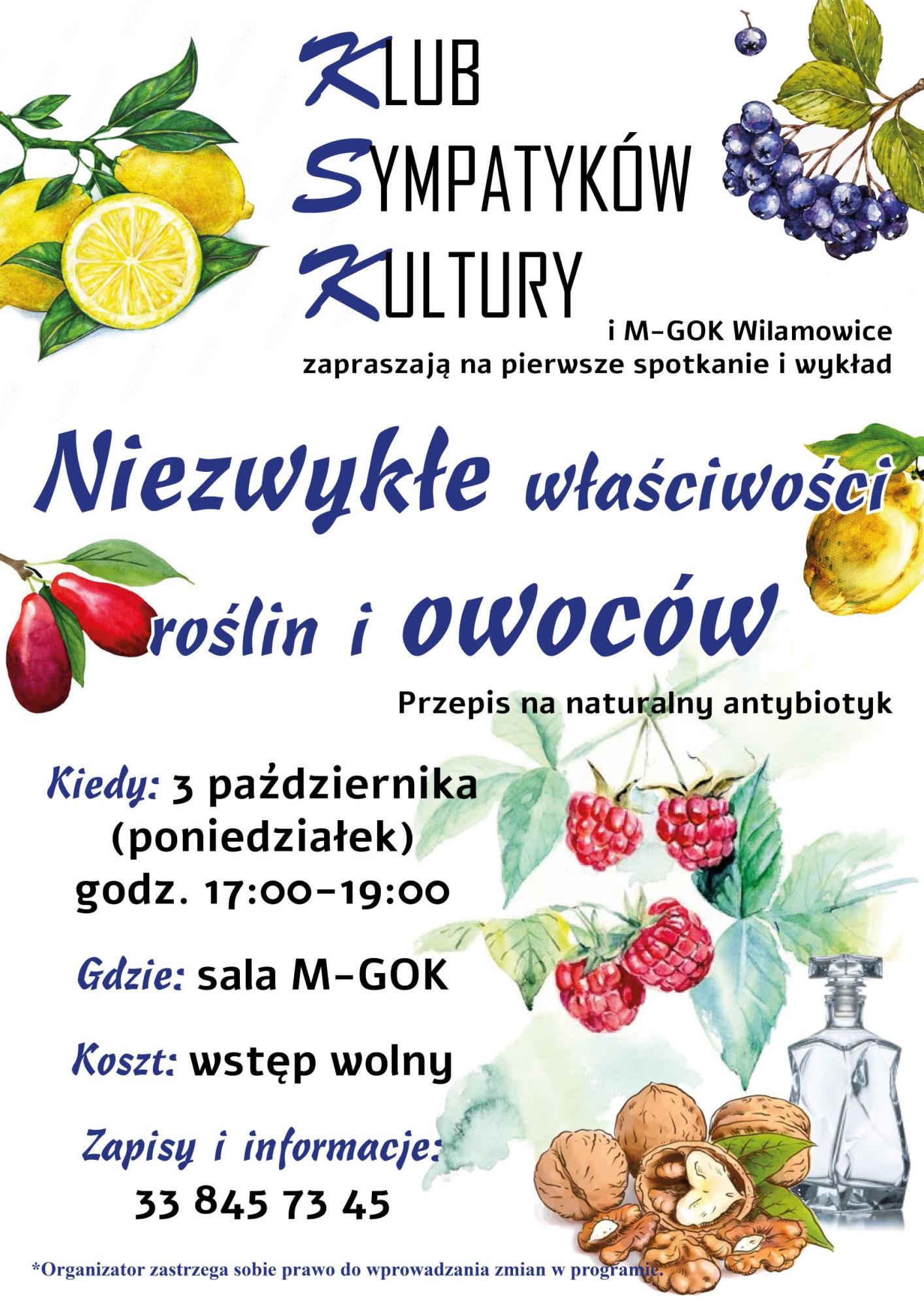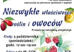 Jeżeli jesienna aura daje Ci się we znaki, ciało odmawia posłuszeństwa, a za rogiem czeka na Ciebie kolejny nic nie wnoszący antybiotyk - zapraszamy na spotkanie! Dowiesz się o niezwykłych właściwościach roślin i owoców, a co więcej - otrzymasz przepis na naturalny antybiotyk.